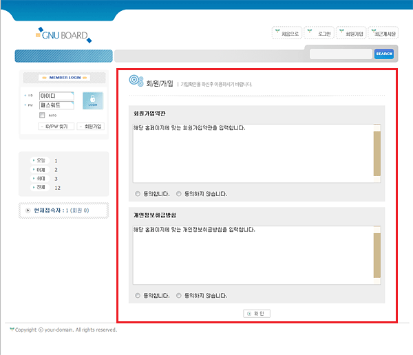 참고로 처음 그누보드 접하신 분들은 비채님이 써주신 적용한 회원가입스킨폴더란 skin/member 폴더에 있는 스킨폴더를 말씀하시는 거에요. 저도 처음 접해서 조금 헤맸네요~.