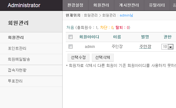 변환하는 딜레이가 있네요.. 이전 그누관리자화면 나오고 깜빡이면서 변하는데..