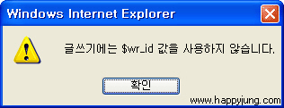 글쓰기에는 $wr_id값을 사용하지 않습니다. 에러 해결하기 정보