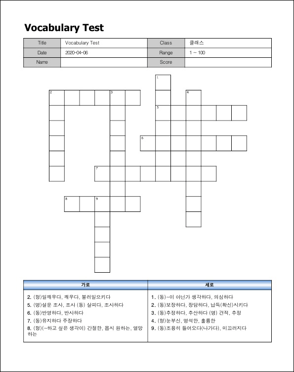 ☞ 단어시험 - 엑셀(xlsx, xls)파일을 업로드하여 사용자 단어장 등록 후 자유로운 시험지 인쇄가능
